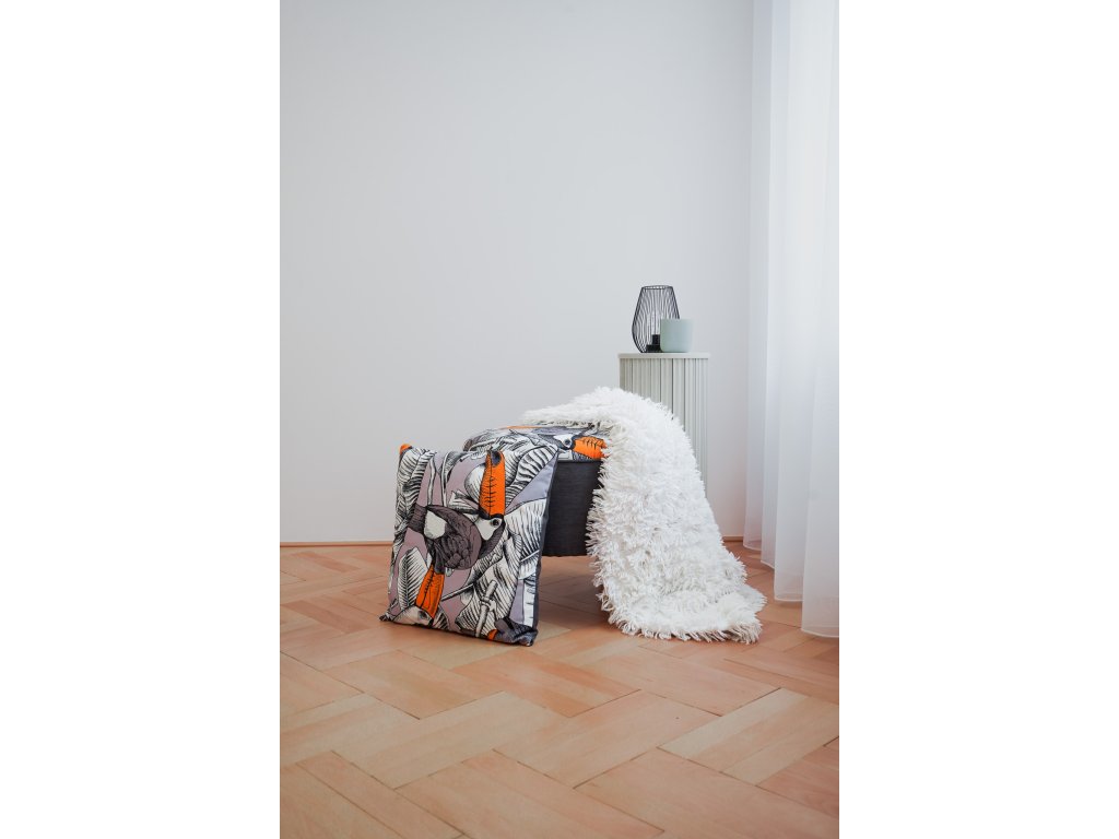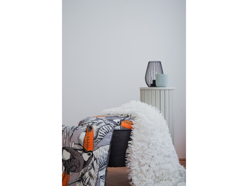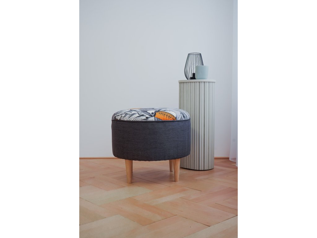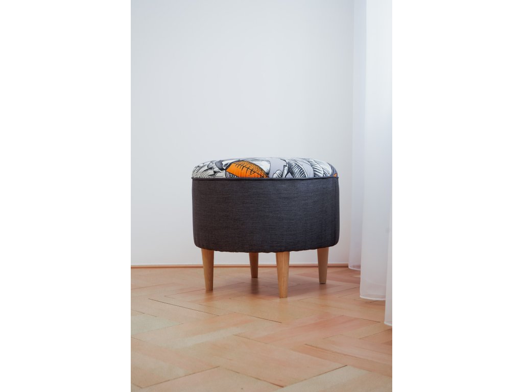Taburet na nožičkách s tukany dokonale zapadne do interiéru s šedými tóny.