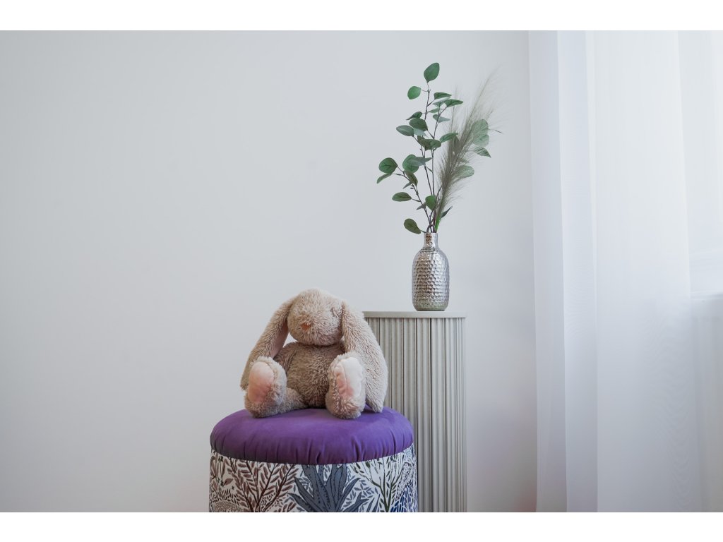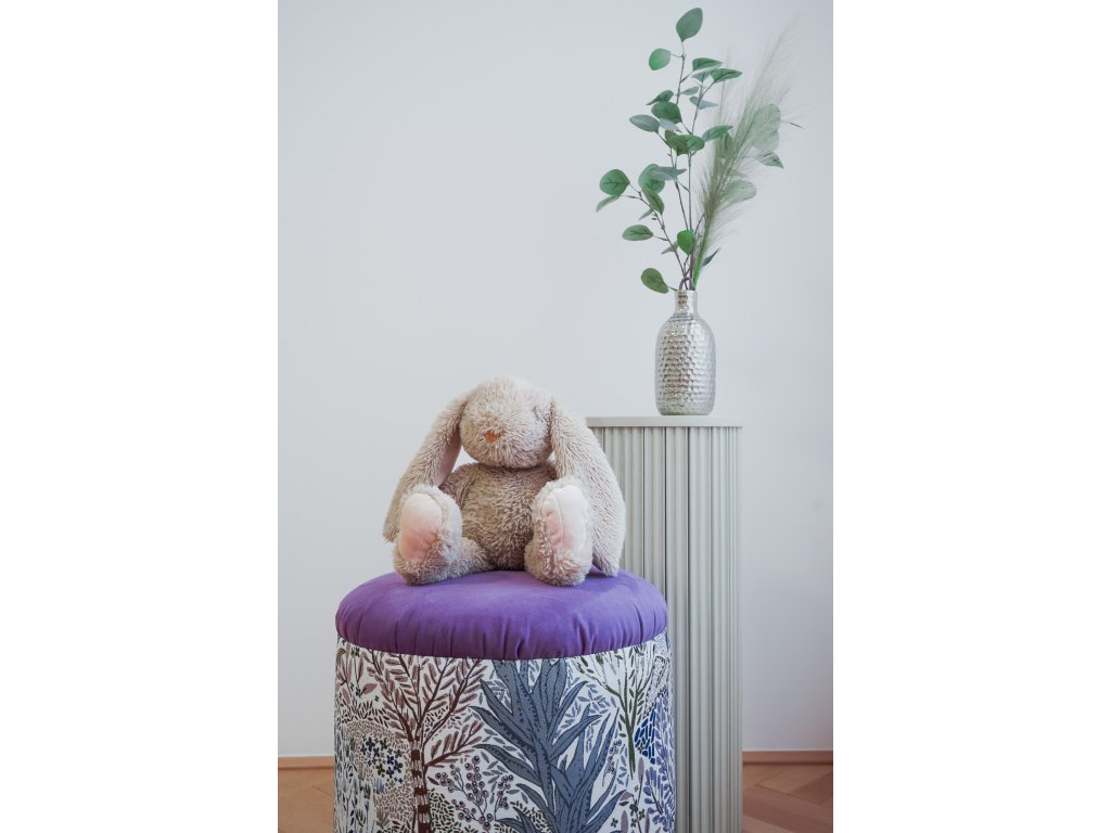 Fialový taburet s béžovo/šedými listy